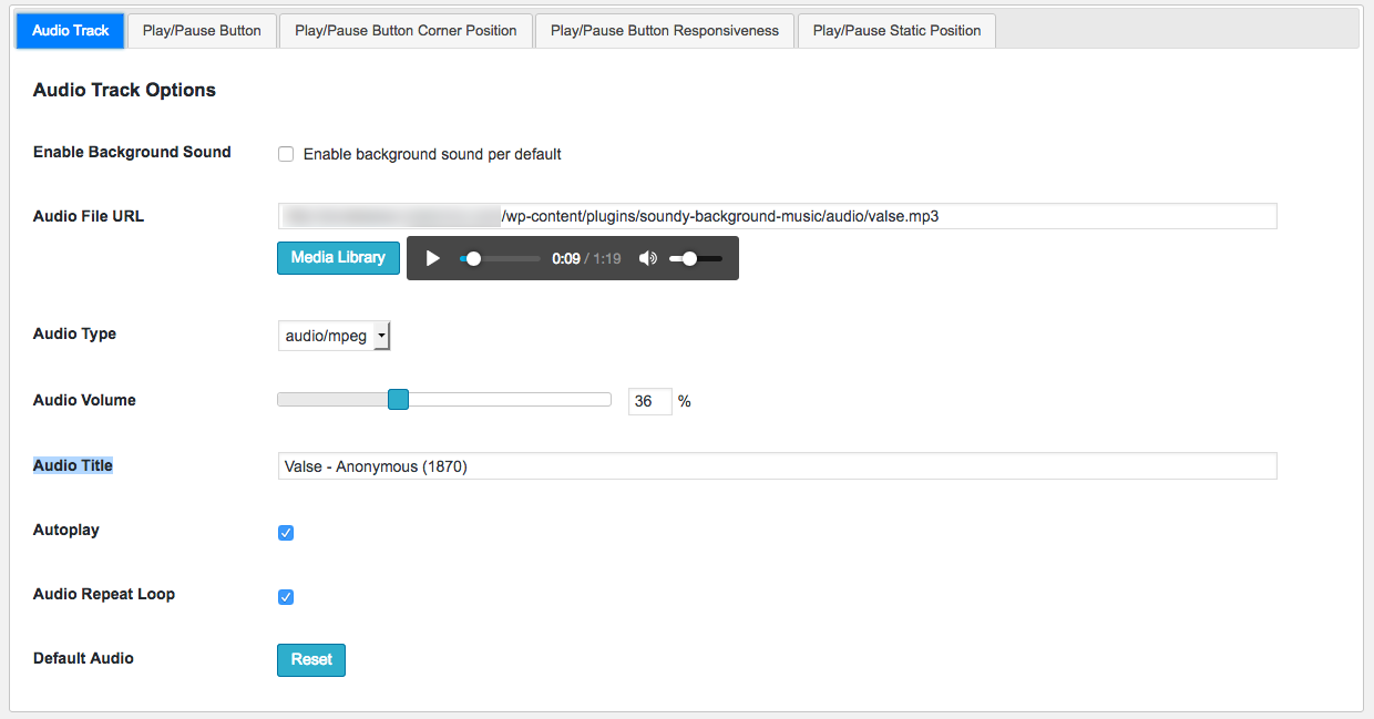 En la pestaña tendremos la opción de activar esta función del complemento por medio del campo Enable Background Sound.
