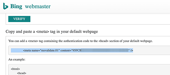 Ahora tendrás que seleccionar el botón de Enviar para seguir adelante. De esta forma Bing te estará pidiendo que verifiques la propiedad de tu sitio web y te estará mostrando los diferentes métodos por los que puedes hacerlo.