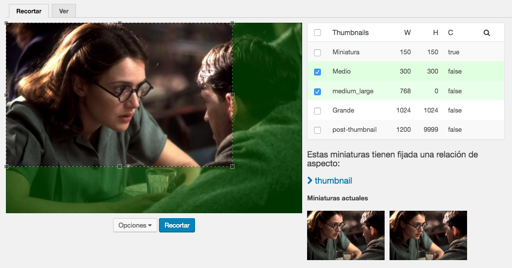 Al editar estas imágenes debemos tomar en cuenta que esto afectará el post que las utiliza. El nuevo recorte que realizamos se guardará y reemplazará a la imagen miniatura antigua.