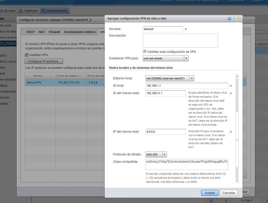 Esta configuración VPN la realizaremos desde el panel VMWare vCloud Director. Para obtener más información sobre su utilización y acceso a este panel, podemos ojear aquí el Manual de Usuario.