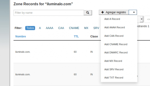 Crear y editar Zonas o Registros de DNS