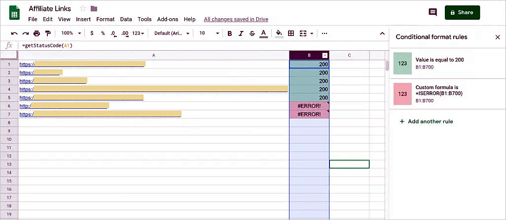 Con este procedimiento, ya tenemos una forma de auditar enlaces de afiliados ilimitados de forma gratuita usando Google Sheets.