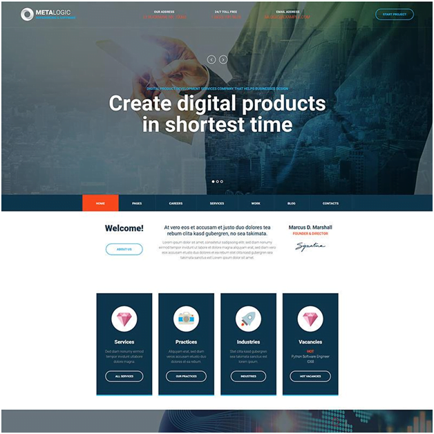 Si estás buscando un tema que se adapte a una agencia de diseño web, Metalogic es lo que estás buscando. Con esta plantilla podrás iniciar un sitio web destinado a compañías de desarrollo de software y empresas ISP. Metalogic es responsive , amigable con SEO, posee compatibilidad con todos los navegadores y viene optimizado para pantallas de retina. Además, cuentas con variaciones de layouts de cabecera y pie de página, una variedad de iconos FontAwesome y una colección de fuentes de Google. Podemos decir entonces que esta plantilla tiene todo lo que necesita un negocio contemporáneo.