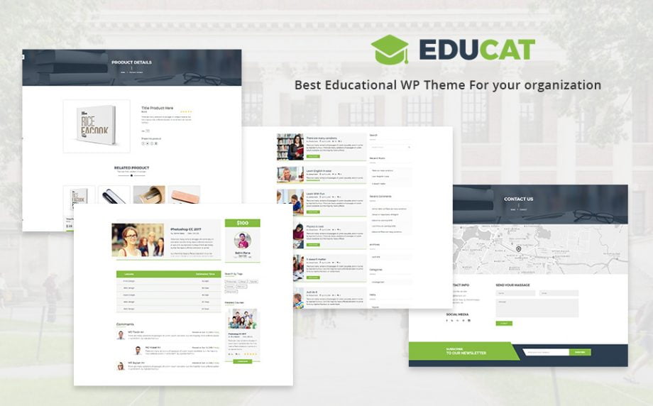 El tema Educat es universal y se adapta a cualquier página web que este enfocada en la educación. Esta plantilla incluye una variedad de herramientas como el constructor de arrastrar y soltar KingComposer.