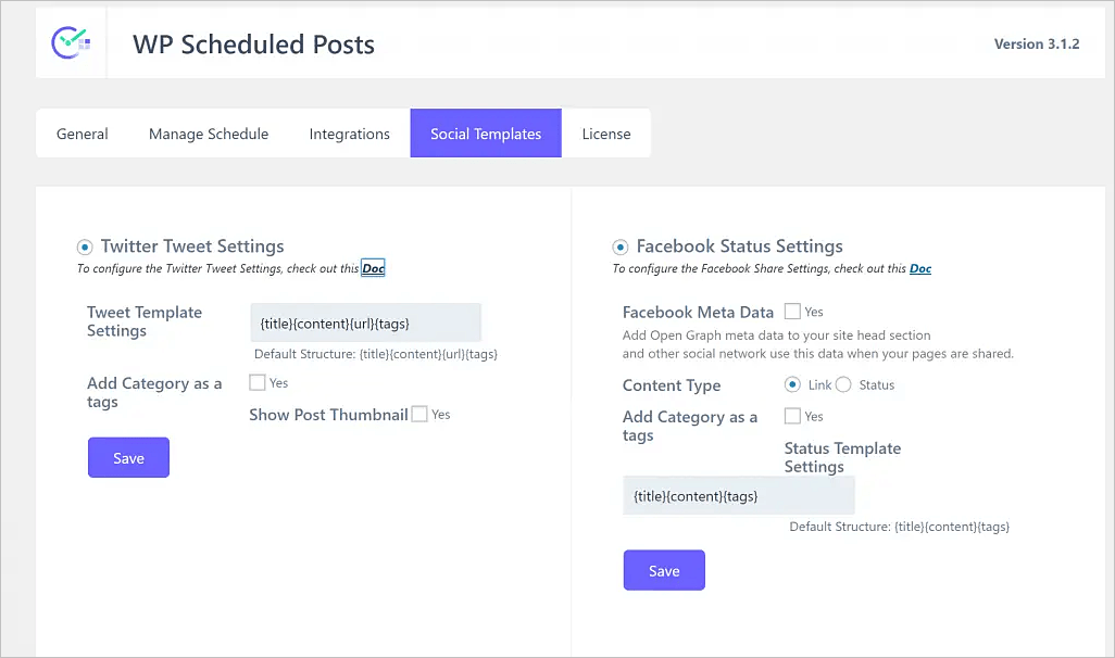 Por el momento, WP Scheduled Posts comparte automáticamente la publicación en Facebook o Twitter tan pronto como se publica.